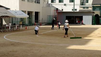 昼休みから放課後に幼稚園の先生方と保護者の方々が準備をされていました。
