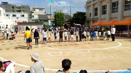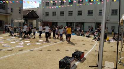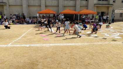 今日、東小橋幼稚園運動会が東小橋小学校運動場で開かれました。小学生が「めくって めくって」に参加していました。