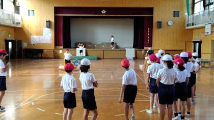 5時間目、5年生が講堂で体育の学習をしていました。