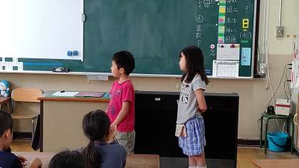 今日の日直さんが、前に出てお話をしていました。