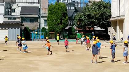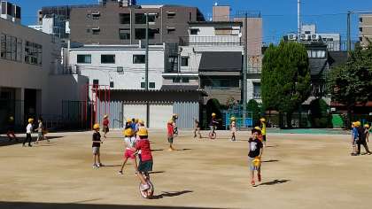 今日は、1年生から3年生までの児童が運動場で遊んでいます。