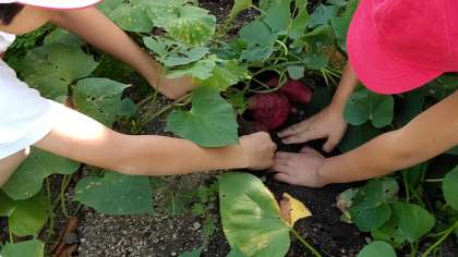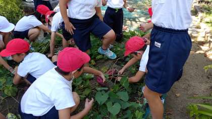 1学期から育てていた、サツマイモの収穫をしていました。大きなサツマイモが育っていました。