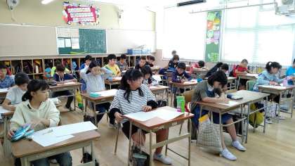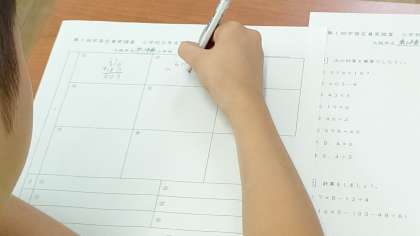 3時間目、5年生が算数の学習をしていました。「学習定着度調査」の問題に取り組んでいました。