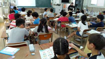 3時間目、4年生が算数の学習をしていました。「がい数にする方法」を考えていました。