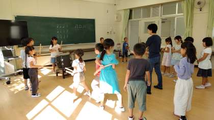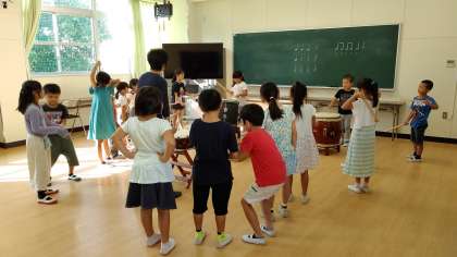 5時間目、2年生が多目的室で和太鼓をしていました。元気よく大きな音がしていました。