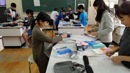 1時間目、 5年生が家庭科の学習をしていました。「ナップサック」を作っていました。