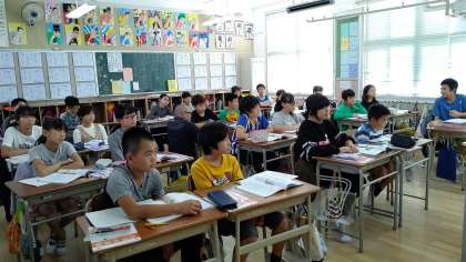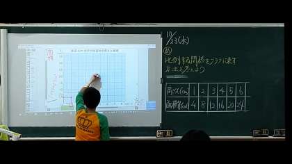 3時間目、6年生が比例する関係をグラフに表していました。