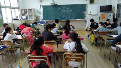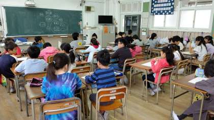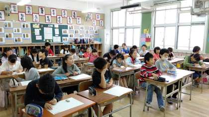 1時間目、4年生が国語の学習をしていました。作文の下書きをしていました。