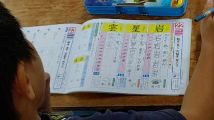1時間目、2年生が国語の学習をしていました。漢字「雲」を練習していました。