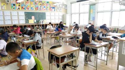 3時間目、6年生が算数のテストをしていました。