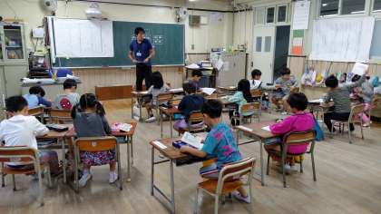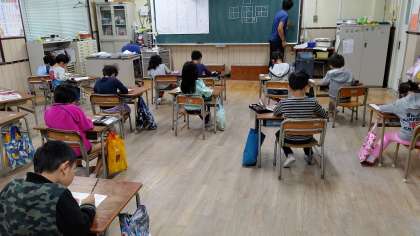 朝の学級活動で、席替えをしたあと、漢字のテストをしていました。