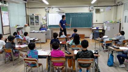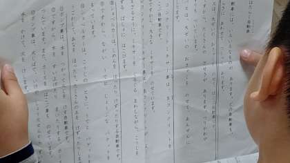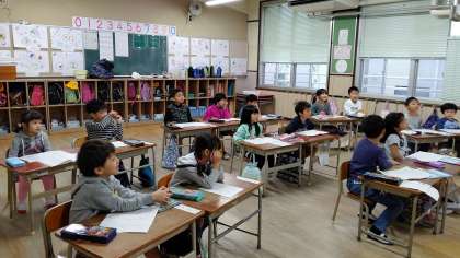 1時間目、1年生が国語の学習をしていました。説明文「はたらく自動車」をみんなで読んだあと、内容の読み取りをしていました。