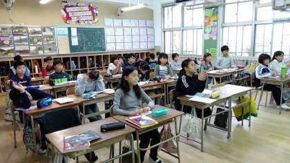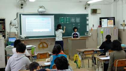 1時間目、5年生が国語の学習をしていました。漢字「程」「税」「墓」「肥」を学習していました。