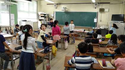 3年生が朝の学級活動で、ともだちの良いところを言ってあげていました。