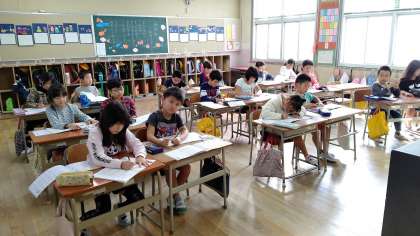 1時間目、2年生が国語の学習をしていました。漢字「当」を学習していました。