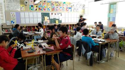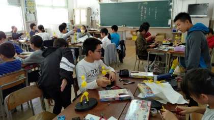 5時間目、6年生が図工の学習をしていました。針がねを使って造形物を作っていました。
