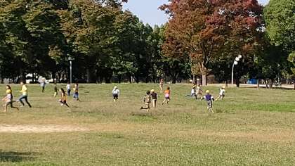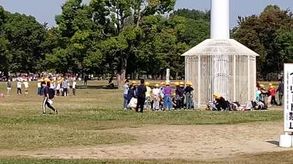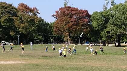 昼食のあと、学年ごとに分かれて遊んでいます。