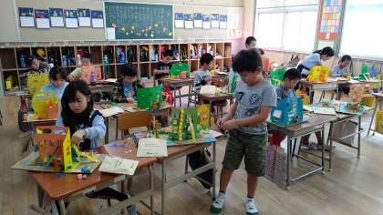 図工の学習で、お家を上手に作っていました。