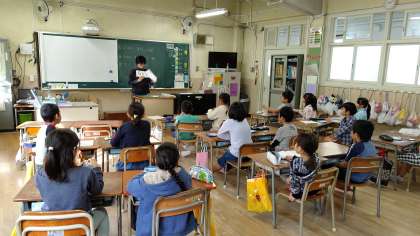 1時間目、2年生が算数の学習をしていました。「かけ算」を学習していました。