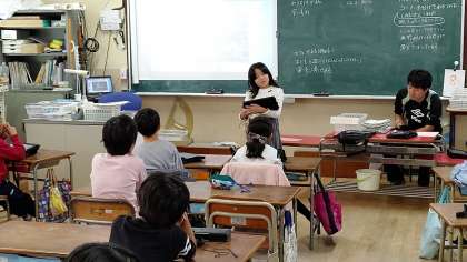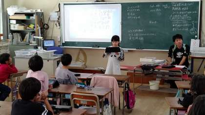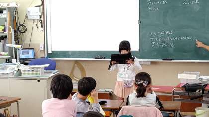 5時間目、タブレットを使って、社会見学で行った「ライフ」の発表をしていました。