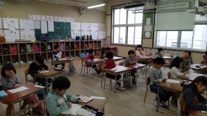 朝の学級活動で、漢字テストをしていました。