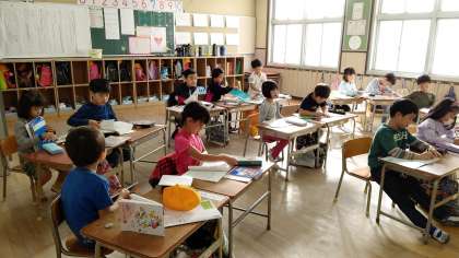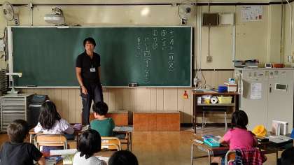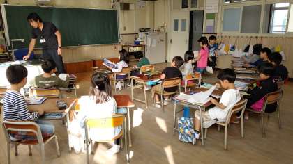 朝の学級活動で、連絡帳に今日の宿題を書いていました。プリントも一枚もらっていました。