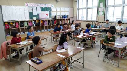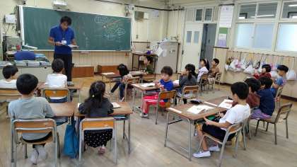 席替えのあと、1時間目、1年生が国語の学習をしていました。
