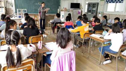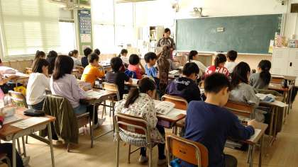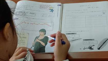 2時間目、4年生が音楽の学習をしていました。フルートとクラリネットの音楽鑑賞をしていました。