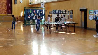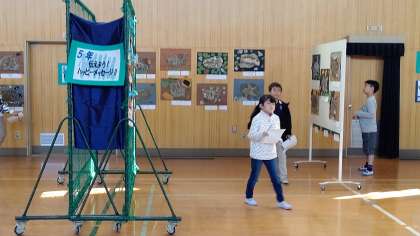 2時間目、4年生が講堂に展示している作品を鑑賞していました。