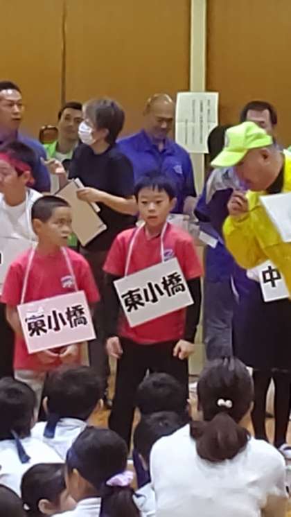 防犯教室の「大声大会」で、東小橋小学校が2位になりました。