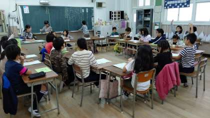 5時間目、4年生が学級会を開いて、給食について話し合っていました。