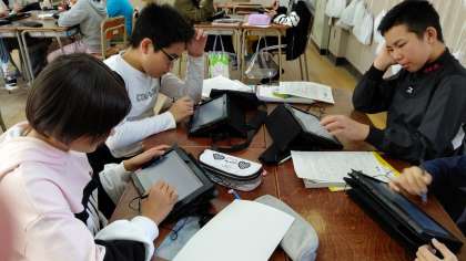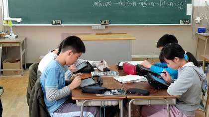 5時間目、6年生が算数の学習をしていました。タブレットを使って、「比例・反比例」の問題を練習していました。