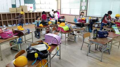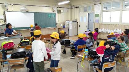 1年生が、5時間目の算数の学習のあと、帰りの会をしていました。