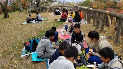 今日は、6年生が社会見学に行きます。お弁当を食べています。