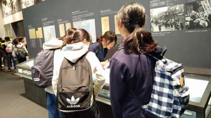 今日は、6年生が社会見学に行きます。ピースおおさかに着きました。