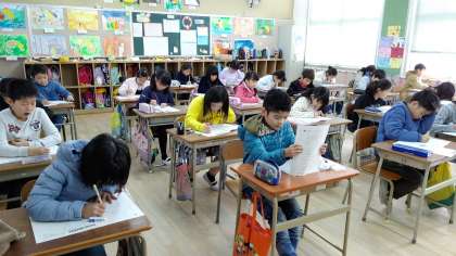 2・3時間目、3年生から6年生までの児童が、算数・理科のテストを受けます。児童の皆さん、頑張って自分の力を出してください。