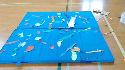 4時間目、1年生が来週9日(月曜)にある、幼稚園年長さんとの交流会の準備をしていました。「お・も・て・な・し」の準備をしていました。