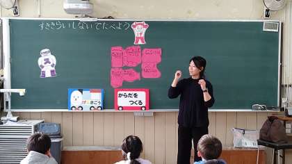 5時間目、松岡先生が、食育「すききらいしないでたべよう」をテーマに授業をしていました。