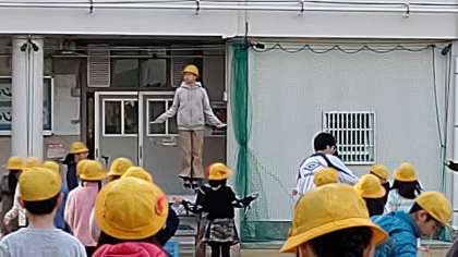 朝の全校朝会で、「縄跳び」をしていました。