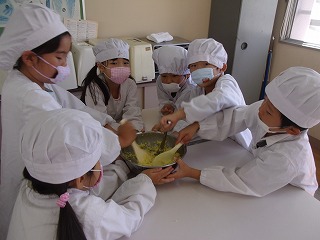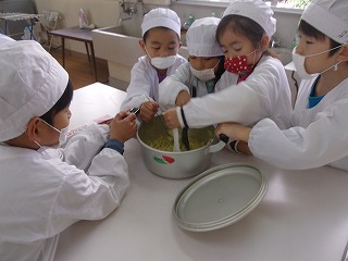 おさとうと生クリームを入れて、おいもをつぶしました。