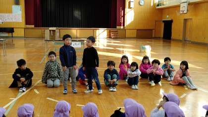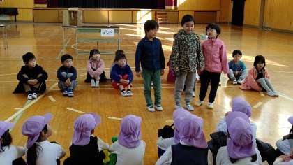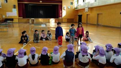 2時間、東小橋幼稚園の園児が来校して、1年生と交流していました。