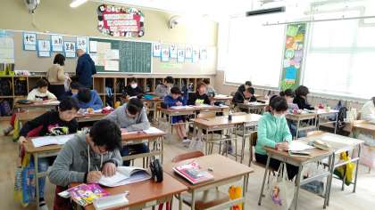 3時間目、5年生が算数の学習をしていました。今日から、教室に子どもたちが戻ってきました。