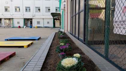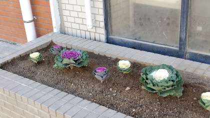 玄関前に、地域の方々が葉牡丹を植えてくださいました。お正月の準備ができました。ありがとうございました。