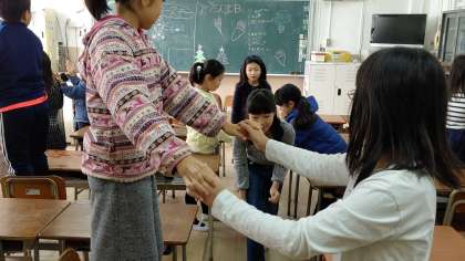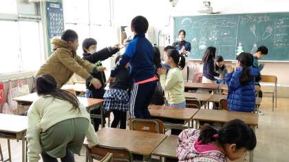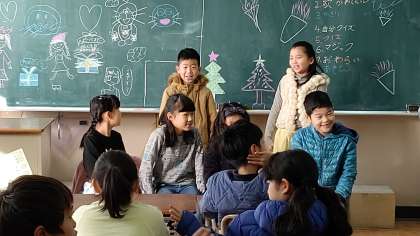 1時間目、4年生がお誕生会をしていました。12月生まれの友だちをみんなで、お祝いしていました。