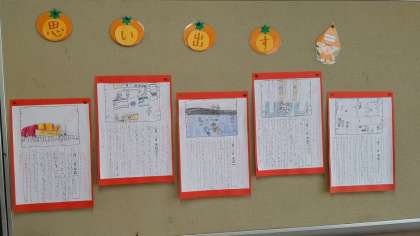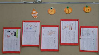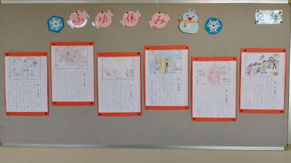 2年生の教室の掲示板と廊下の掲示板に、冬休みの絵日記が掲示されていました。楽しい思い出が、たくさん書かれていました。