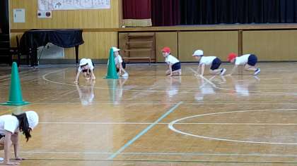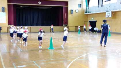 2時間目、1年生対象に東成区体力向上事業の出前授業がありました。「表現運動」をしていました。