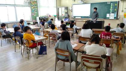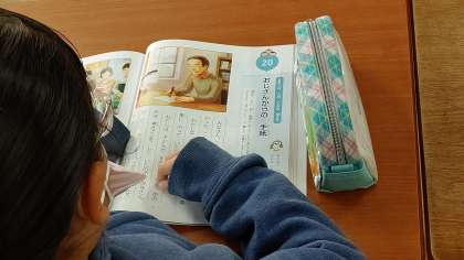 1時間目、2年生が道徳の学習をしていました。「おじさんからのてがみ」という文章を読んで、まわりのひとのことを考えていました。電車に乗ったときのマナーについて考えていました。