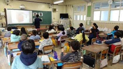 1時間目、3年生が社会科の学習をしていました。「むかしのくらし」について、調べていました。