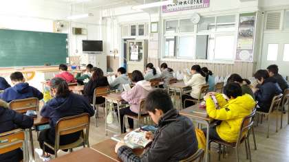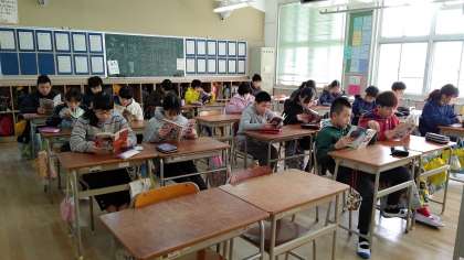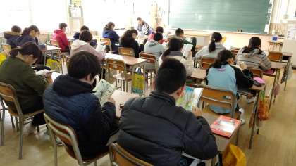 6年生が、朝の学級活動の時間、読書をしていました。みんな静かに読書をしていました。