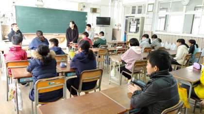 読書活動のあと、日直の係りの児童が前に出て、自分が気になったニュースを、みんなに話していました。